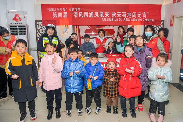 在津乐园红色驿站,凤凰湖社区新时代文明实践站的志愿者们与社区居民一起搓元宵、煮元宵。志愿者们还现场煮好汤圆,将一碗碗热腾腾、香喷喷的汤圆送给前来参加活动的居民,并送上节日的祝福,让他们感受到社区“大家庭”的温暖,现场欢声笑语不断。